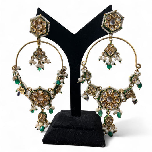 Elevate your festive look with these exquisite handcrafted hoop earrings, adorned with intricate Kundan work,...