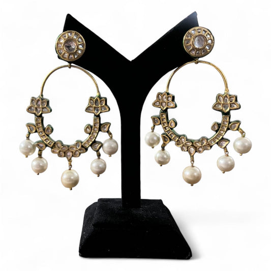 A timeless blend of tradition and elegance, the Heritage Pearl Hoops feature intricate kundan craftsmanship...