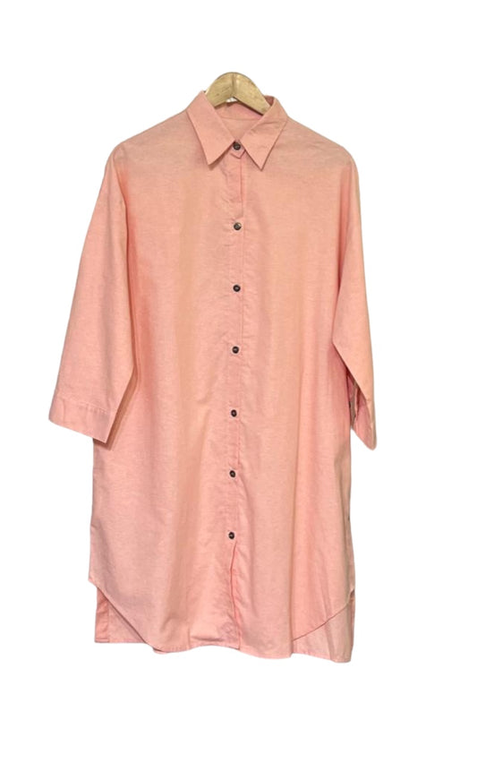 Featuring a classic plain shirt dress and cuffed three fourth sleeves, it offers timeless sophistication....