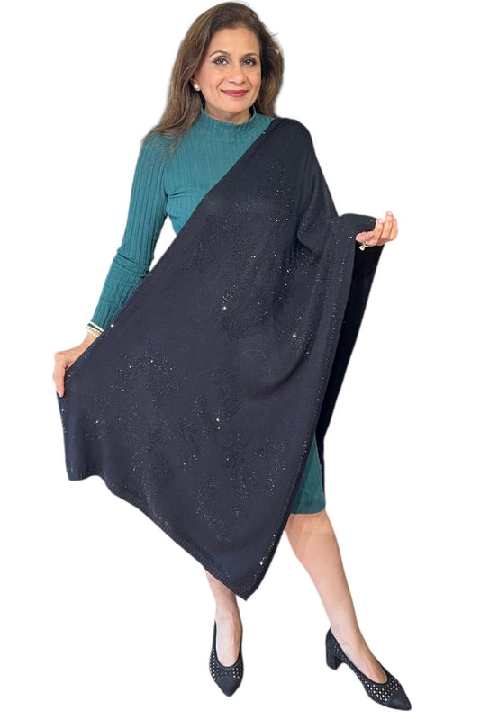 Pure Cashmere Knitted Stole with Allover Self Color Swarovski Floral Crystal Design. Care Instructions: Dry...