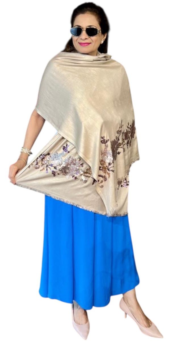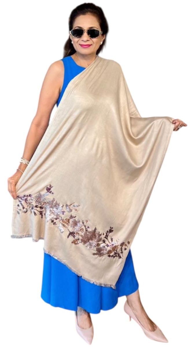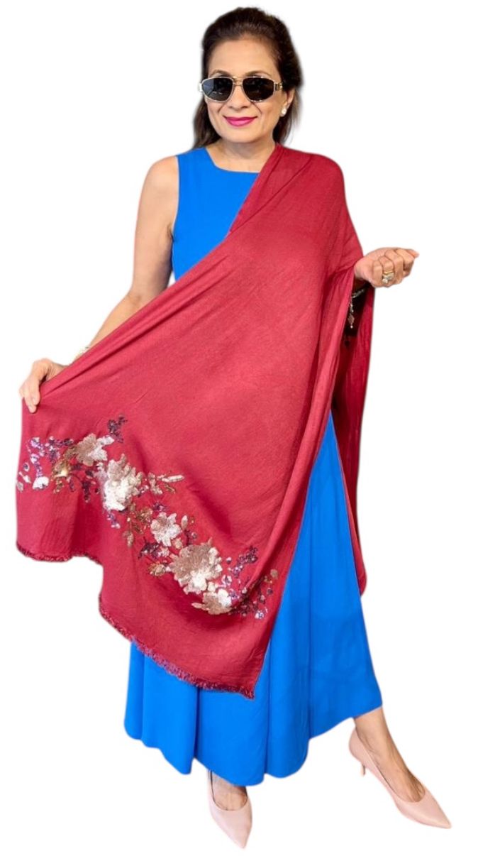Delicate floral detailing along the border adds a refined charm, making it perfect for both casual outings and elegant occasions. Whether styled over ethnic wear or paired with western outfits, the Aaira Bloom Stole brings a subtle statement to any look.