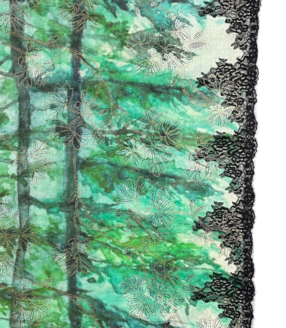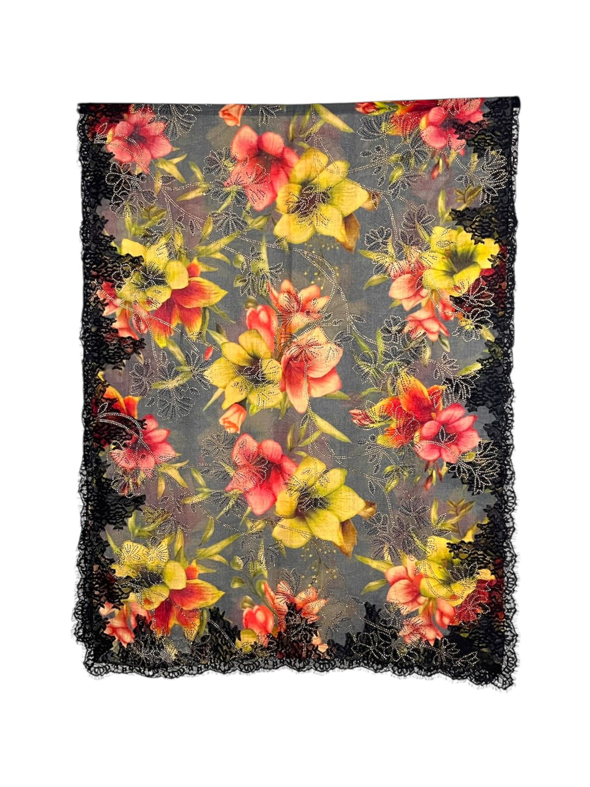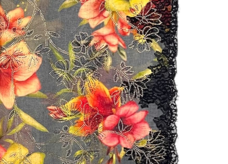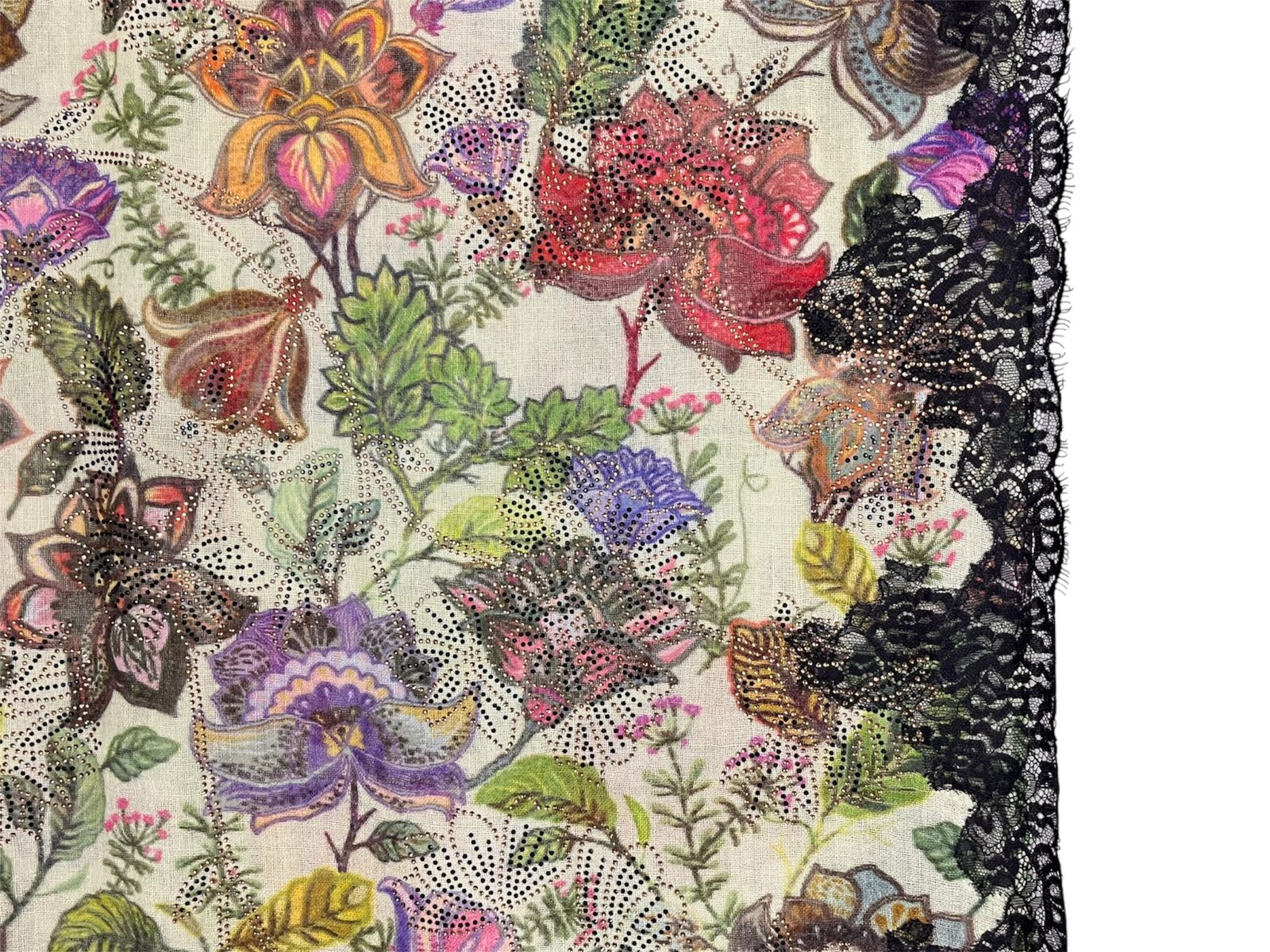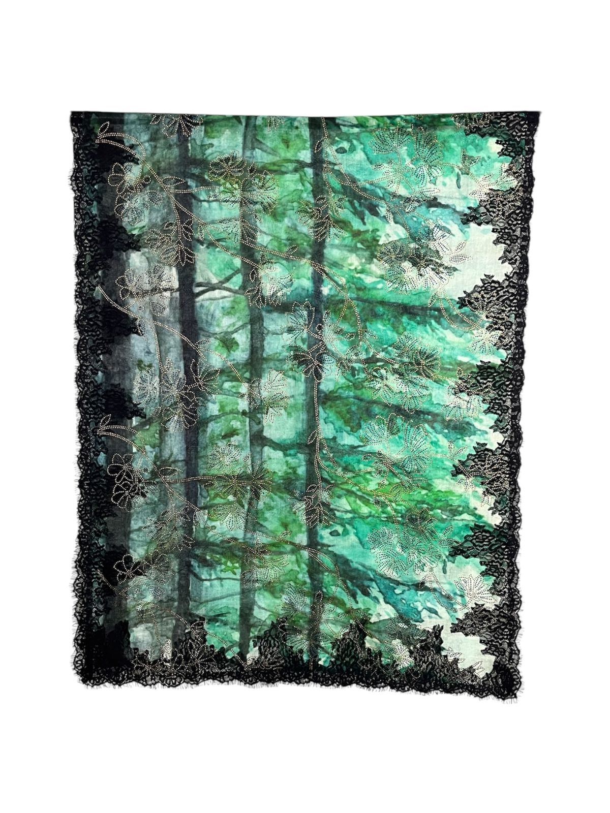 Elevate your style with the Aurora Charm Stole, a luxurious blend of silk wool and French lace. Soft, lightweight, and exquisitely detailed, this stole is designed to bring timeless elegance to your wardrobe.