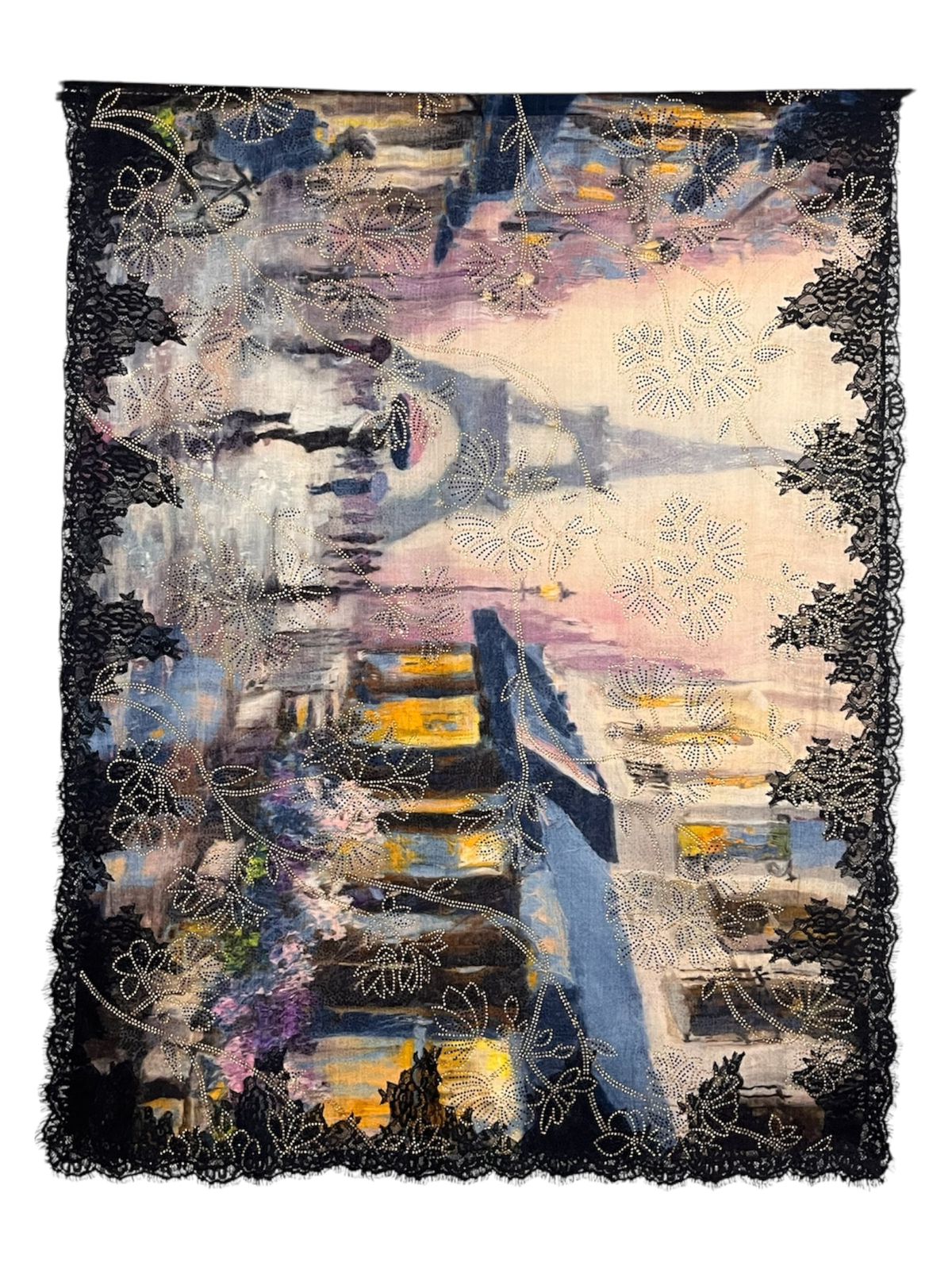 The Aurora Charm Stole is not just an accessory – it’s a piece of art, combining the richness of silk wool with the timeless grace of French lace.
