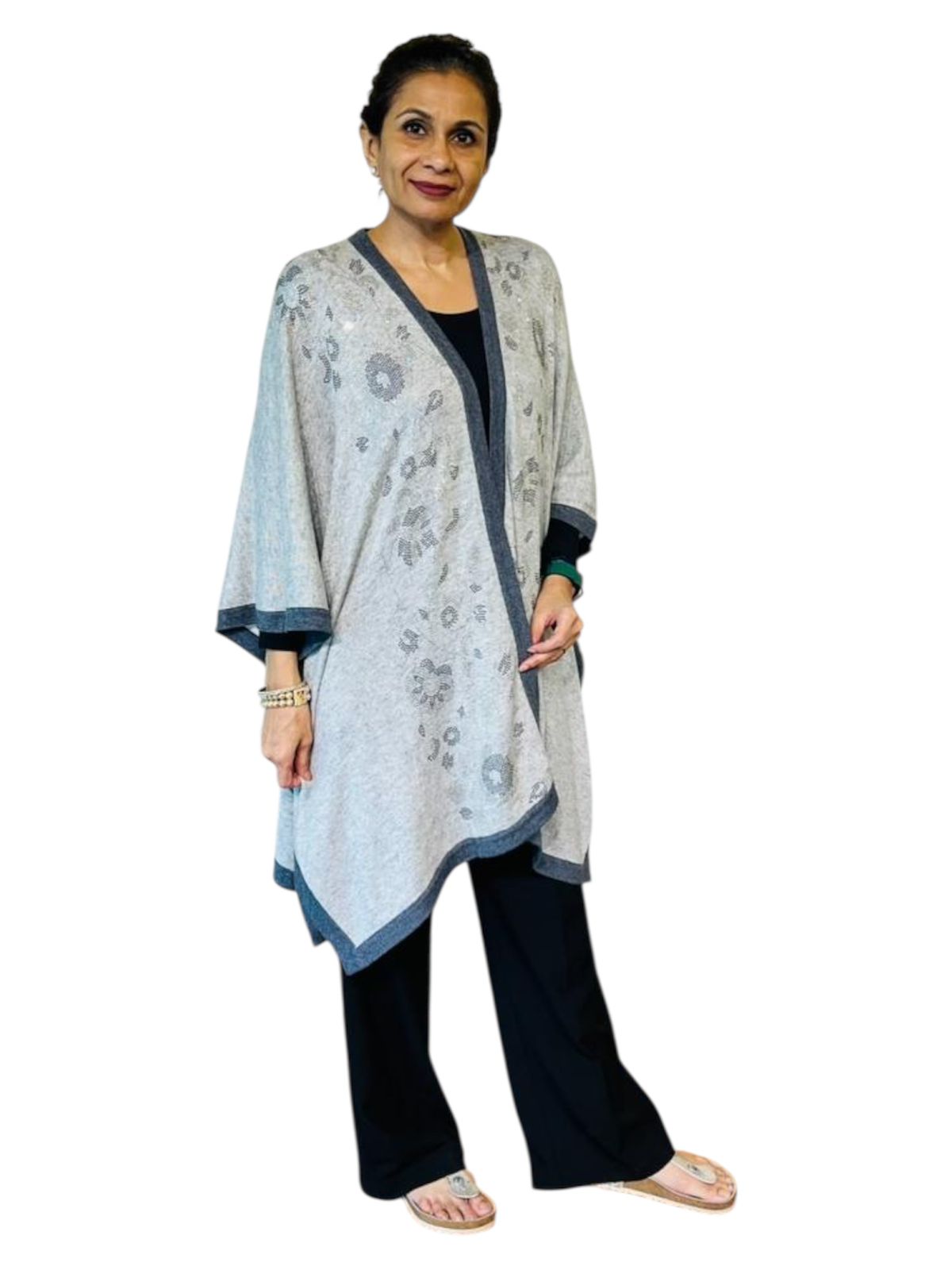 The 3-Ply thick Pure Cashmere fabric makes the capes luxuriously soft and wondrously warm. These capes have a 0.5 inch crystal border on all sides .This cape does not have lining .These capes are woven from the best quality A-grade, three (3) Ply thick Cashmere Yarns. This Cashmere fabric makes the cape soft and warm. These capes are truly elegant, sophisticated yet practical. Undoubtedly, this cape will give elegant finishing touch to any outfit.
