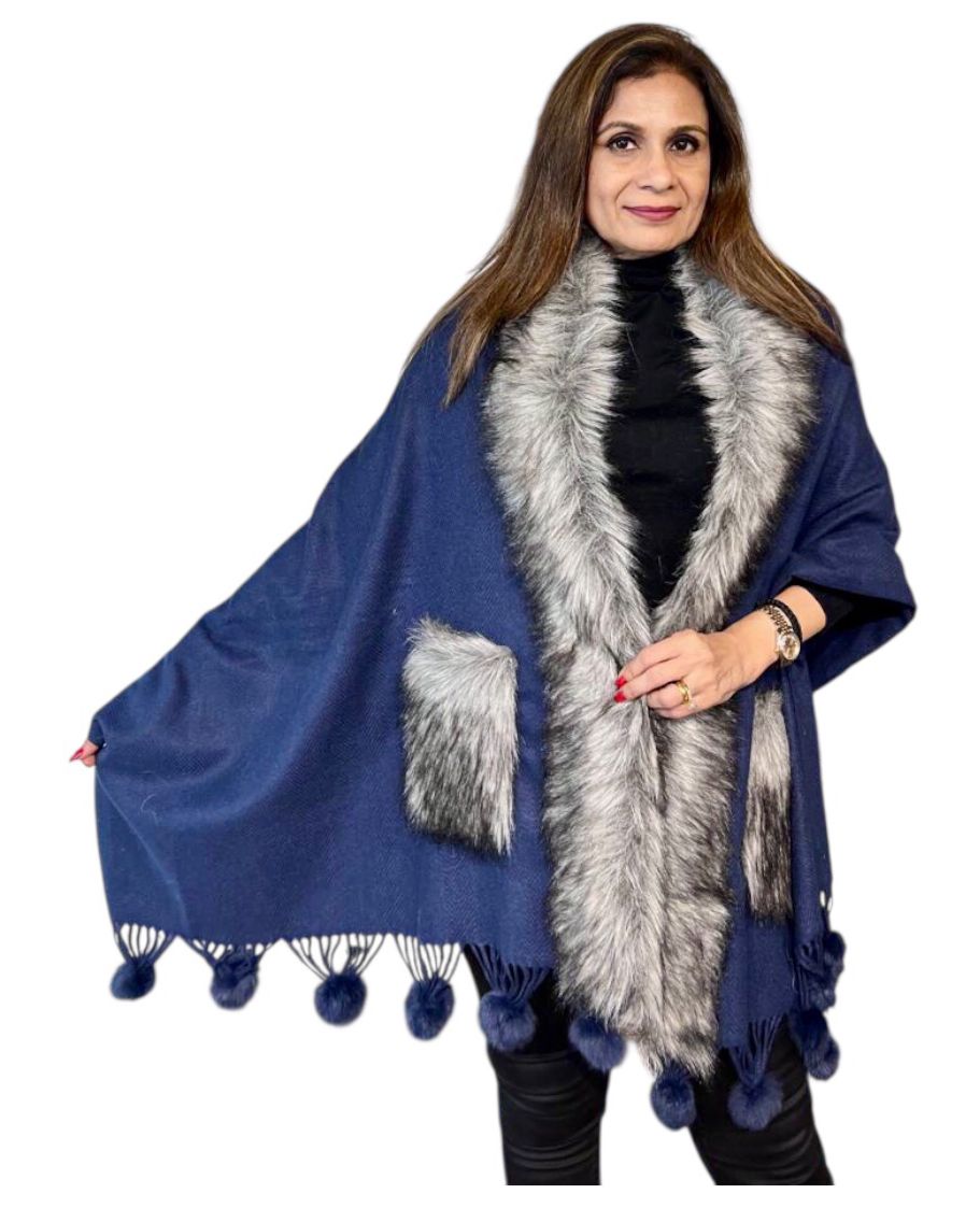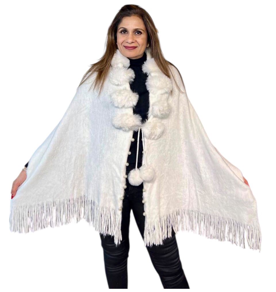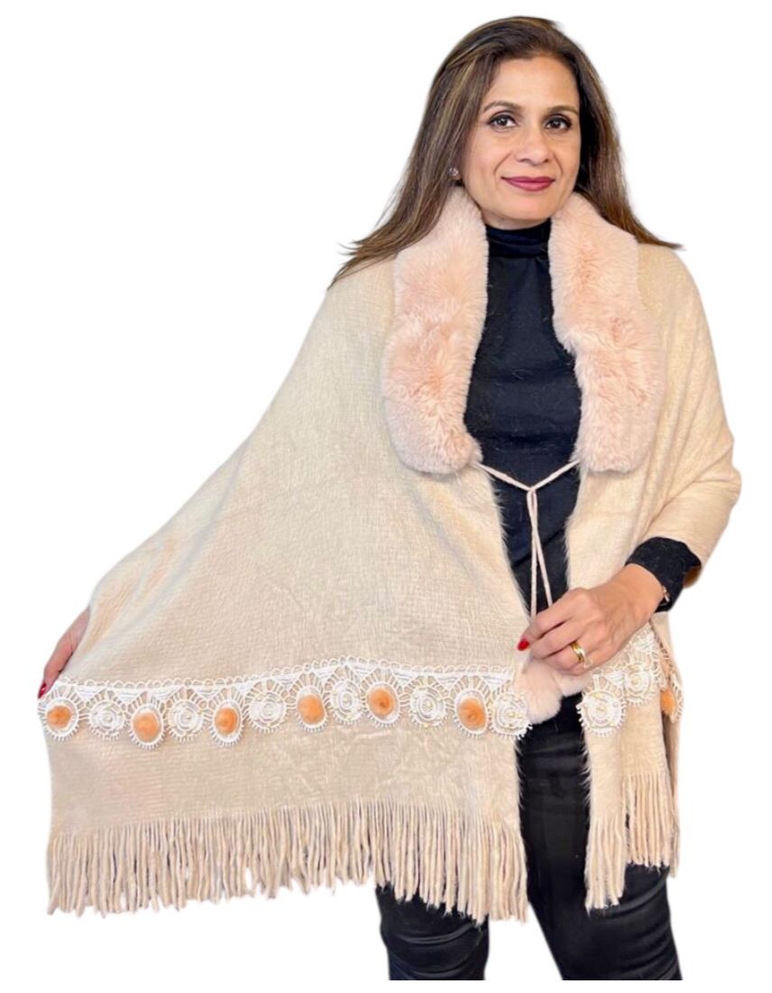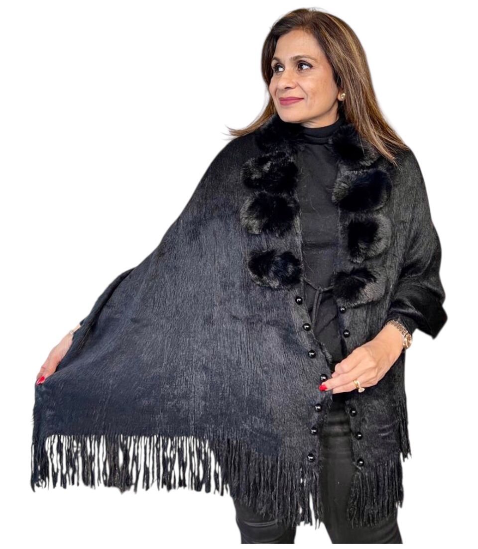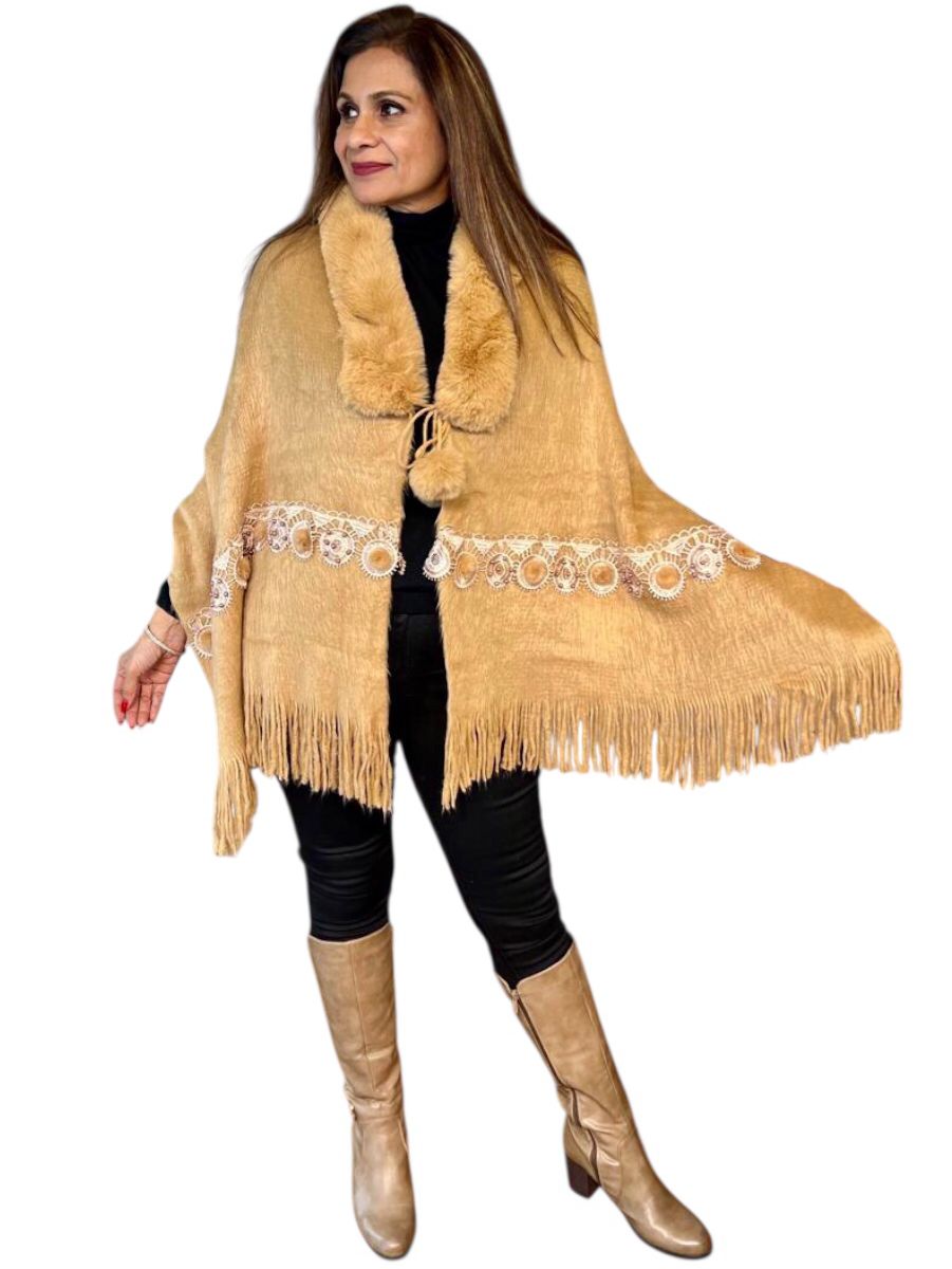 Fur Trim Cape Front Length: 30" | Back Length: 22"