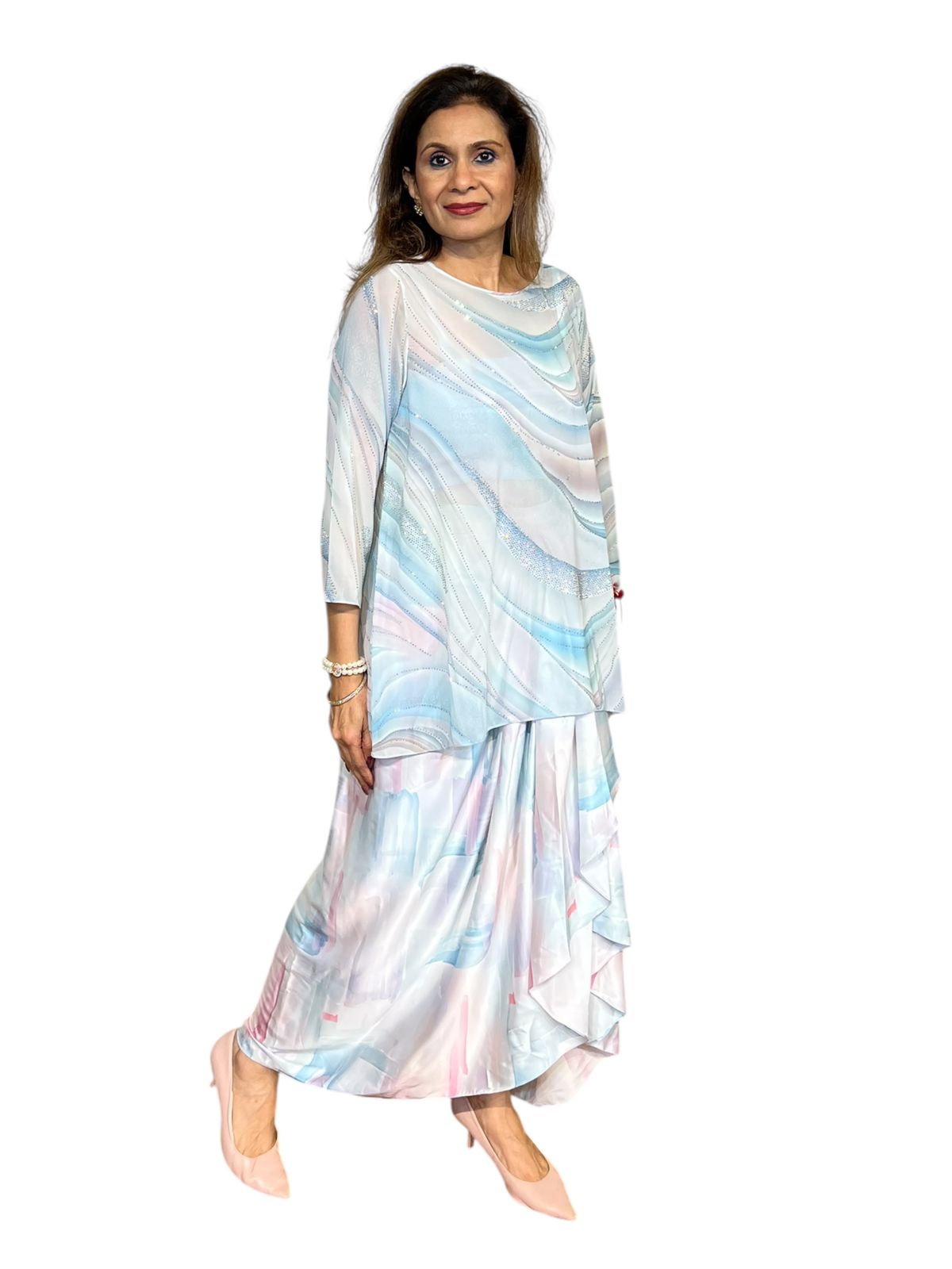 Step into effortless elegance with the Harmony Co-ord Set – a pastel-toned ensemble designed for comfort and sophistication. Featuring a flowy asymmetrical top with a matching draped bottom, this set moves gracefully with every step. To ensure complete ease and coverage, it comes with a detachable slip inside, giving you confidence and comfort all day long.