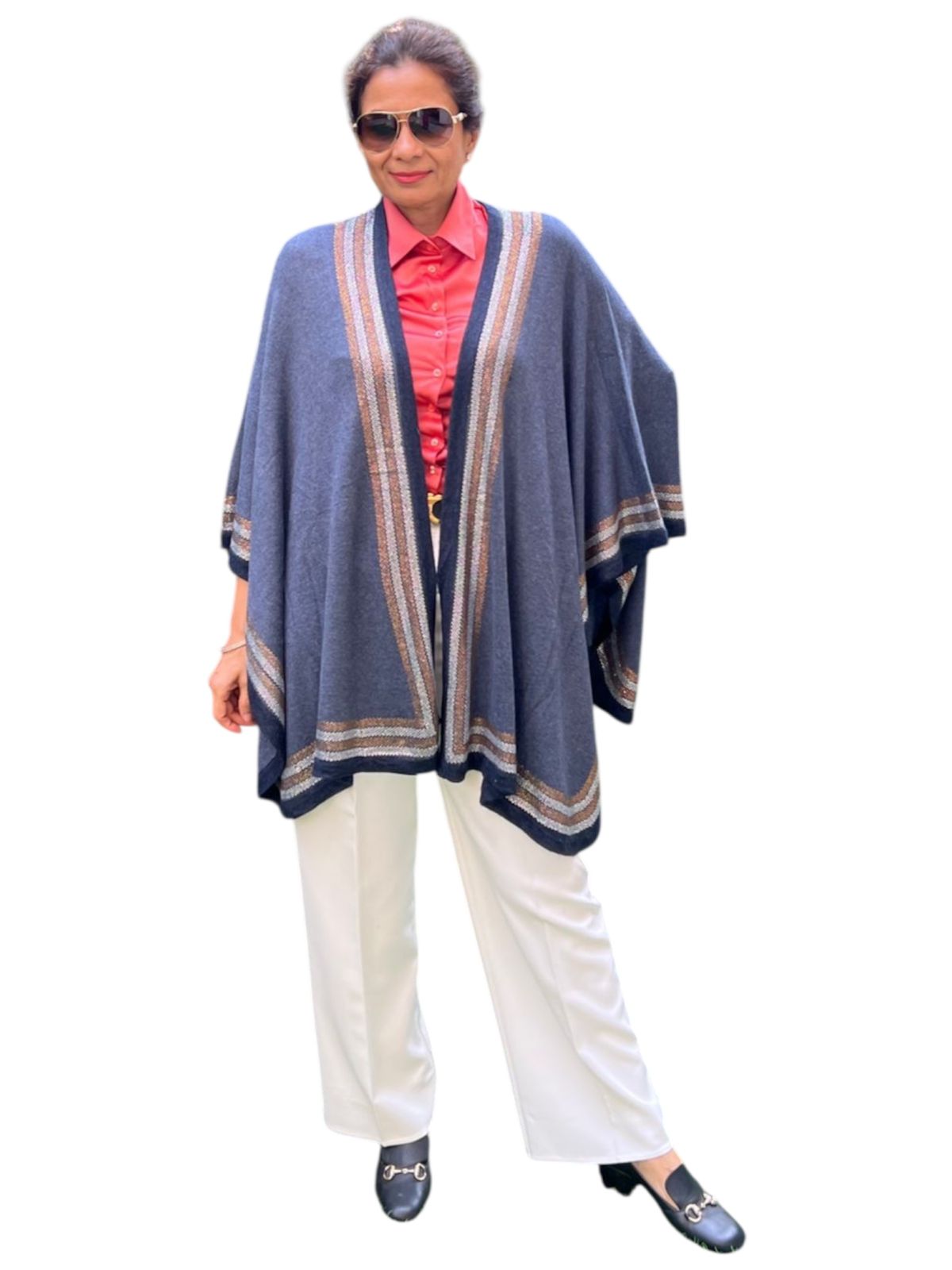 Look Awesome in these 20 liner crystal knitted cashmere capes. An amazing wear for these winter outings and perfect for giftings. Free Size and available in lovely colours. Keeps you very warm as these are cashmere capes.