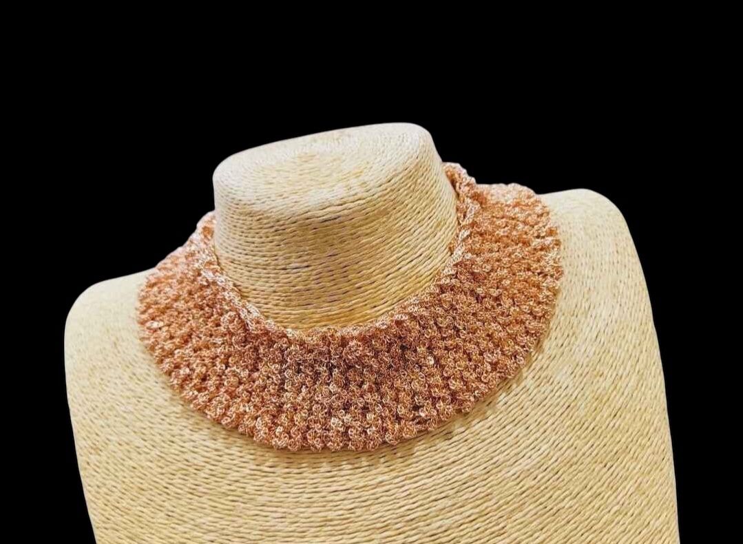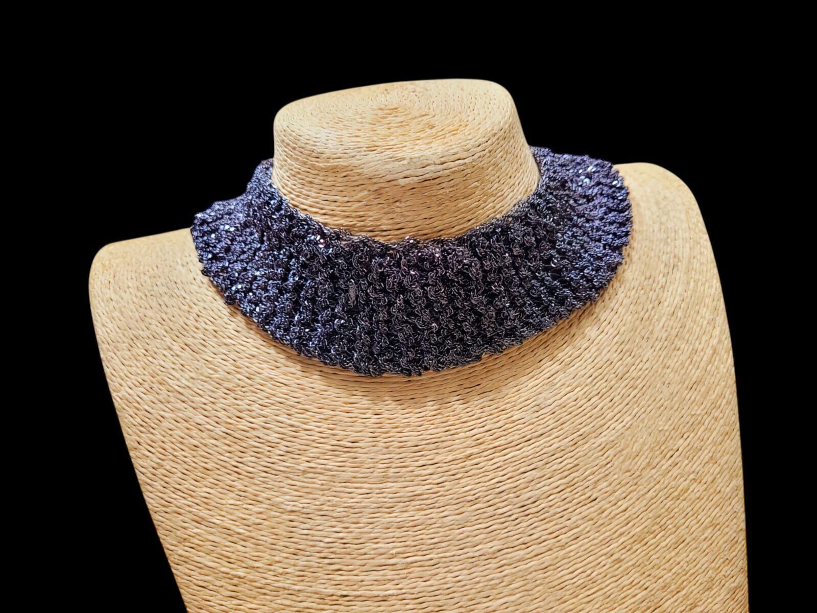 Elevate your style with our stunning handcrafted silver collar necklace, meticulously knitted with shimmering crystal threads. This statement piece features a rich, textured design that beautifully hugs the neckline, offering a bold yet graceful presence. Perfect for evening events, weddings, or festive occasions, it pairs effortlessly with sarees, gowns, or modern ensembles.