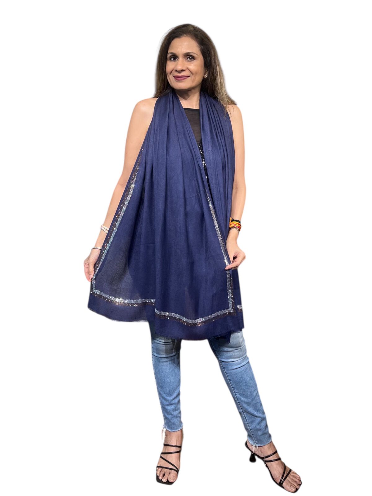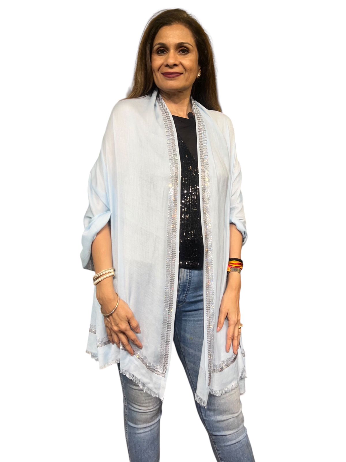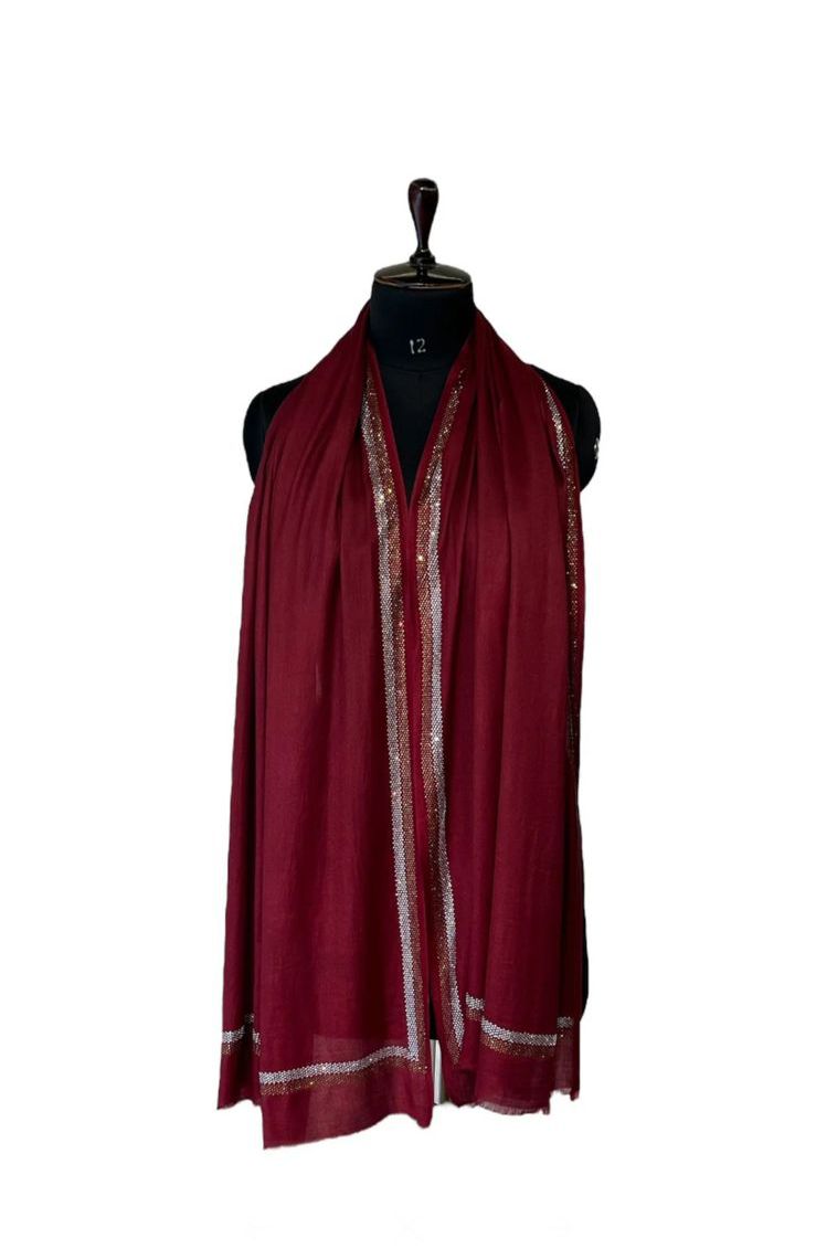Modal silk stoles with 10 lines of crystals silver and gold on them. Perfect for work, wedding and outdoor dinner. Lightweight and Easy to Carry .These stoles measure 81" by 29".