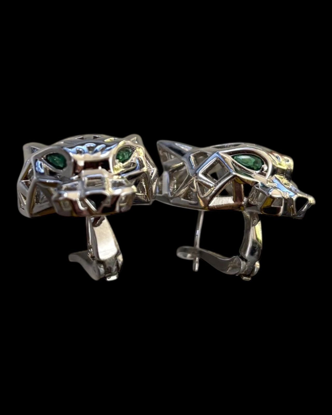 Unleash your bold side with these striking Panther Head Stud Earrings. Crafted with intricate geometric detailing, these earrings feature vivid green eyes that add a fierce yet elegant touch. Available in both classic silver and luxurious gold finishes, they are perfect for making a powerful style statement. Whether paired with casual outfits or evening wear, these earrings bring out confidence and individuality.