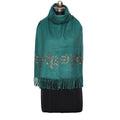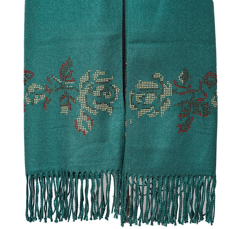 These patterns and color combinations can be easily paired with your coat, sweater, dress or suit. You can lay this stole over your shoulders for relaxing, shopping days, cocktail party, garden party, tea party, or wrap it around it into your suit for a busy day in the office. The stole measures 73 x 27 inches and 3 inches of the fringes, Dry Clean Only.