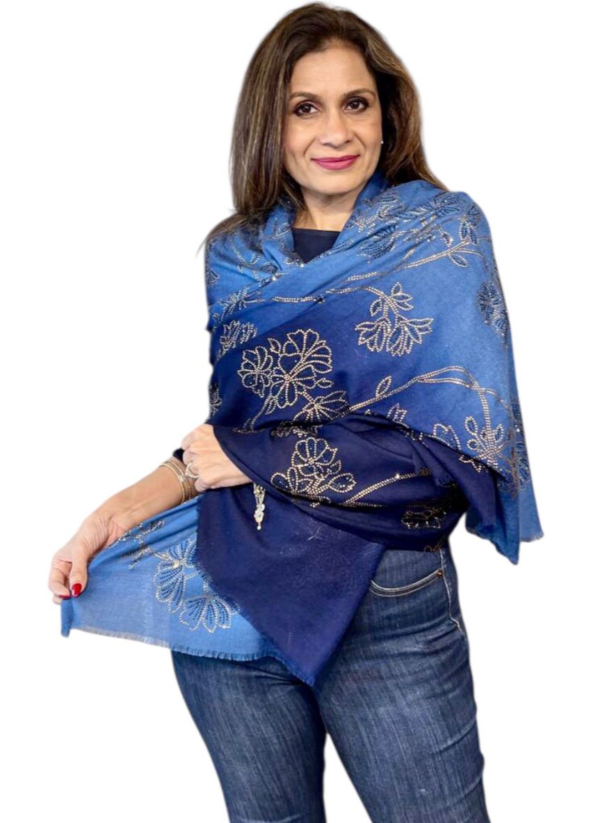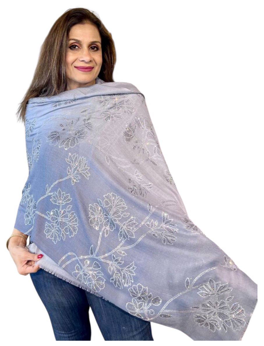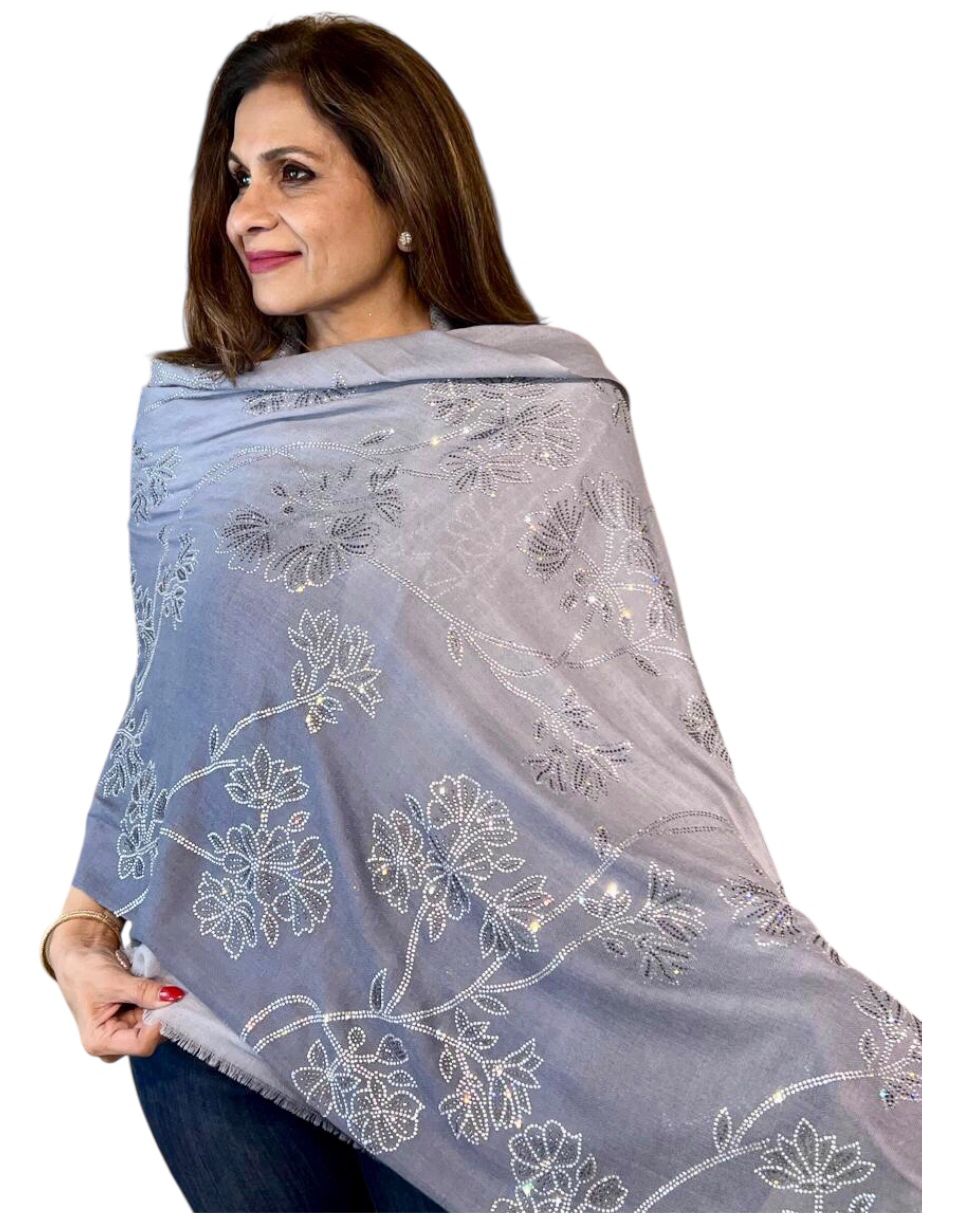 Add a touch of sparkle to your wardrobe with the Sunset Drift Stole, adorned with delicate Swarovski crystal embellishments. Its soft gradient mimics the serene hues of a sunset, creating an ethereal, flowing look that exudes elegance and sophistication. The subtle shimmer of Swarovski crystals catches the light beautifully, making it perfect for festive occasions, evening wear, or special celebrations.