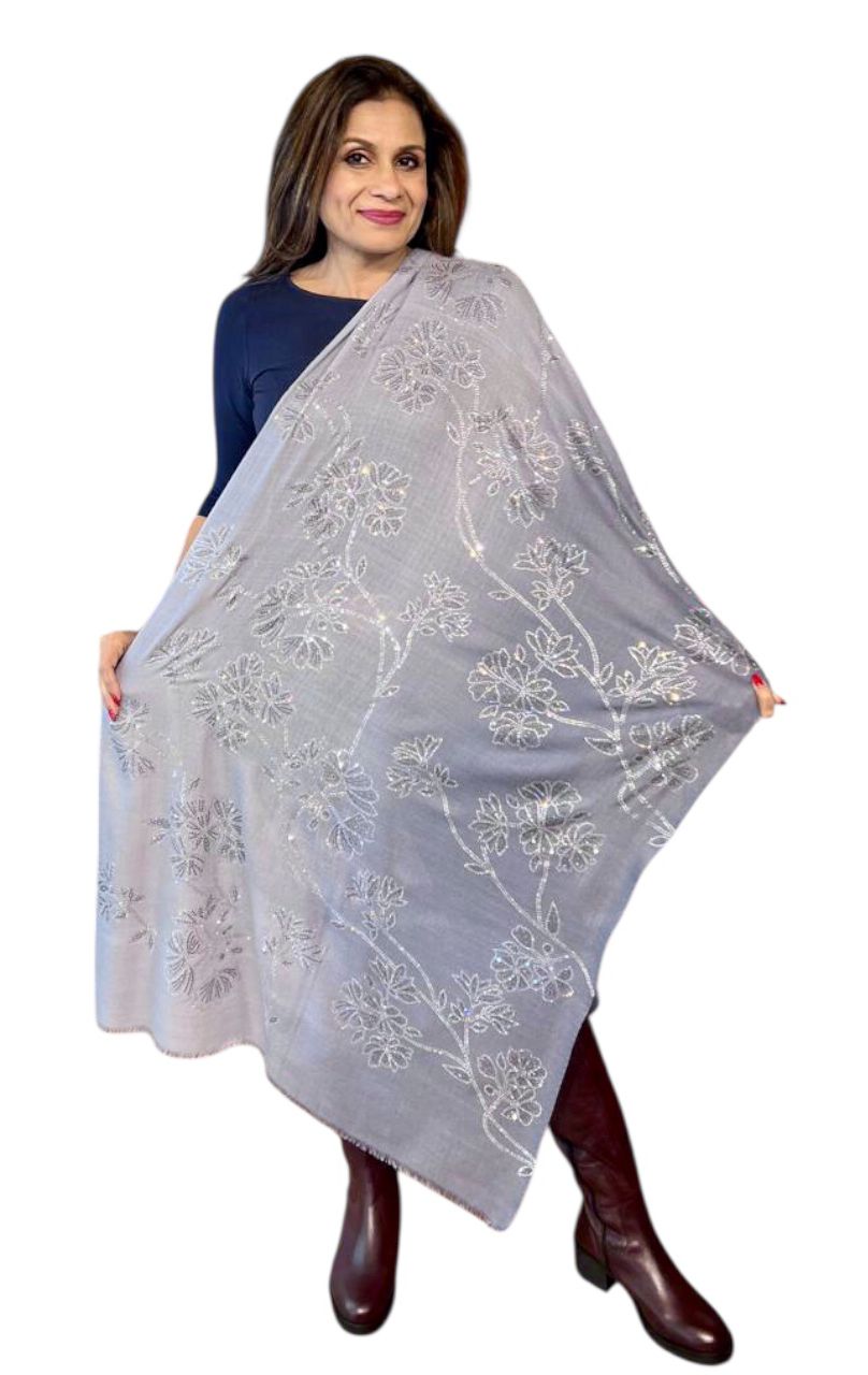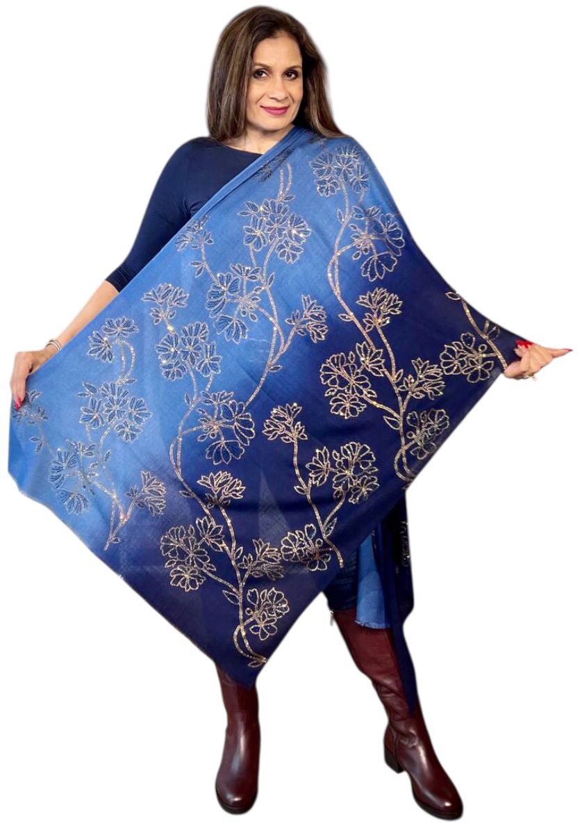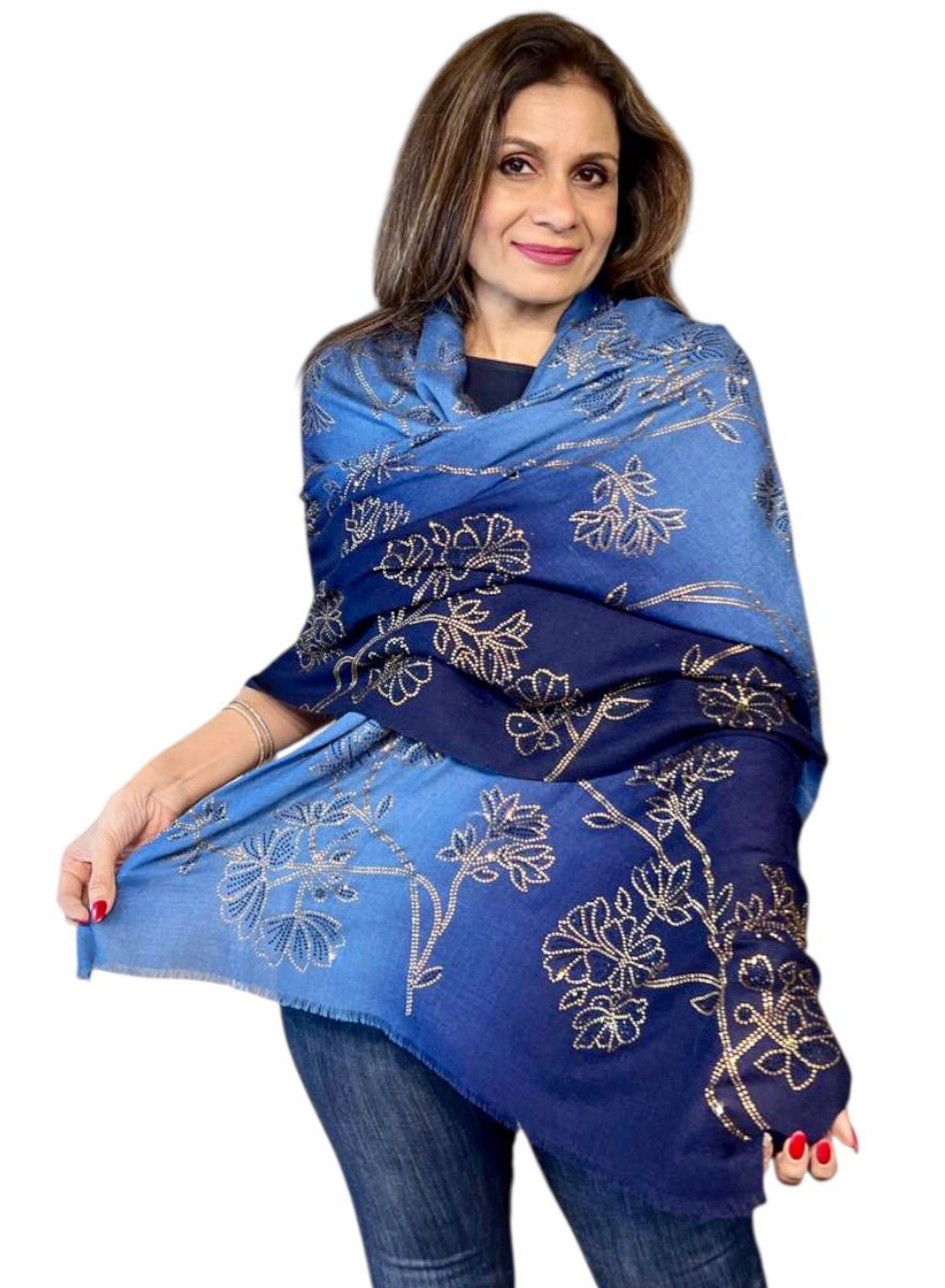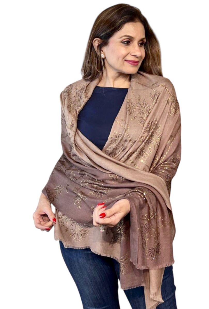 Add a touch of sparkle to your wardrobe with the Sunset Drift Stole, adorned with delicate Swarovski crystal embellishments. Its soft gradient mimics the serene hues of a sunset, creating an ethereal, flowing look that exudes elegance and sophistication. The subtle shimmer of Swarovski crystals catches the light beautifully, making it perfect for festive occasions, evening wear, or special celebrations.