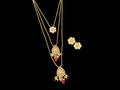 Accented with green stone drops and clusters of tiny pearls and beads, this set blends traditional charm with festive flair.